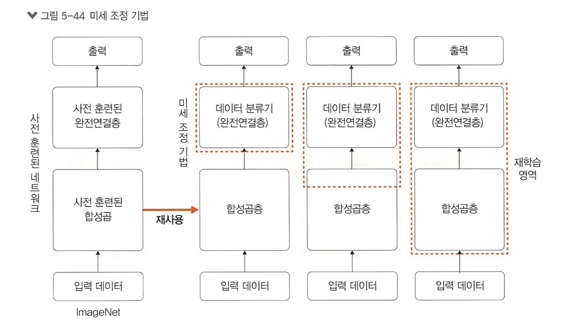데이터셋이 크고 사전 훈련된 모델과 유사성이 클 경우 : 합성곱층의 뒷부분과 데이터 분류기를 학습
