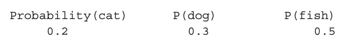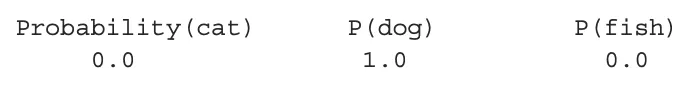 학습 이미지 중 개가 찍힌 이미지 한 장을 세 가지 클래스(개, 고양이, 물고기)중 하나로 분류하려고 합니다. 이 이미지의 실제 확률 분포는 다음과 같다고 합시다.