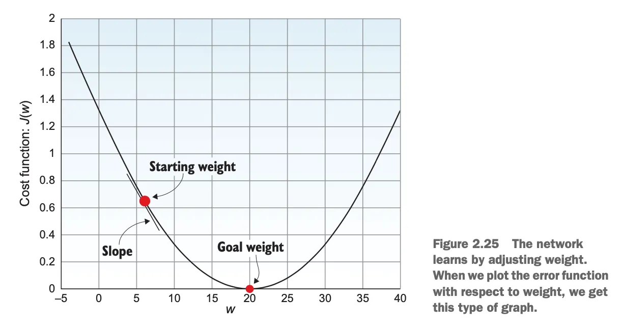 가중치의 변화에 대한 오차 함수값의 변화를 그래프로 나타내면 다음과 같은 결과를 얻을 수 있습니다.