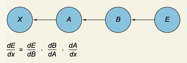 다층 퍼셉트론에서는, 총 오차의 변화를 계산하려면 미분의 연쇄 법칙(chain rule)을 사용해야 합니다.