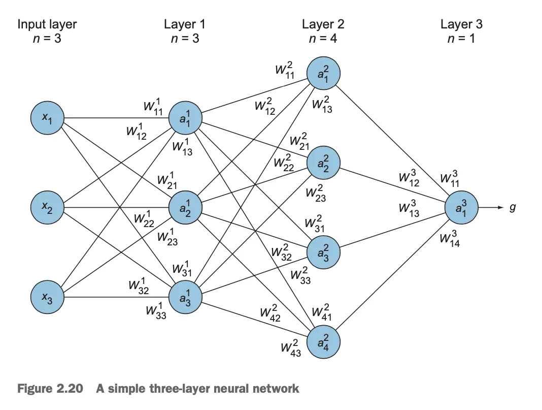 각 층은 뉴런 개로 이루어져 있으며, 층끼리는 가중치 결합을 통해 서로 연결되어 있습니다. 이를 한데 모은 구조가 위 그림에 실린 다층 퍼셉트론(multilayer perceptron, MLP)입니다.