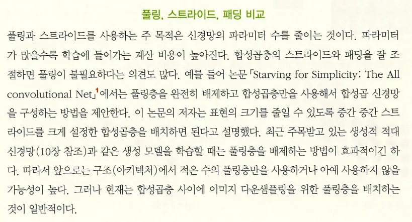 합성곱층의 규모를 줄이는 것이 중요한 이유는 복잡한 프로젝트에 사용되는 CNN은 많은 수의 합성곱층을 포함하며 각각에 수십에서 수백 개에 이르는 합성곱 필터가 쓰이기 때문이다.