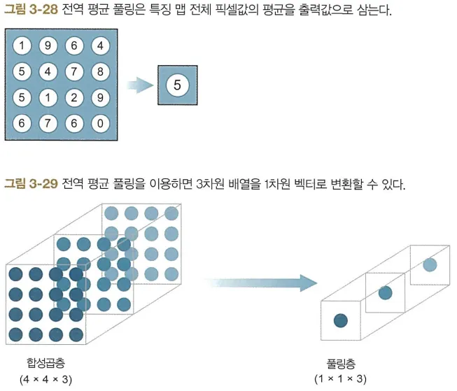 전역 평균풀링(global average pooling)은 특징 맵 크기를 극단적으로 줄이는 방식이다.