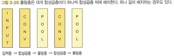 CNN 구조는 일반적으로 합성곱층 사이에 풀링층을 끼워 넣는 경우가 많다.