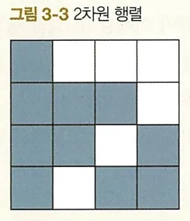 이 때 이 행렬의 요솟값은 0부터 255의 범위를 가지며, 0은 검은색, 255는 흰색, 그 사이의 값은 회색조이다.
