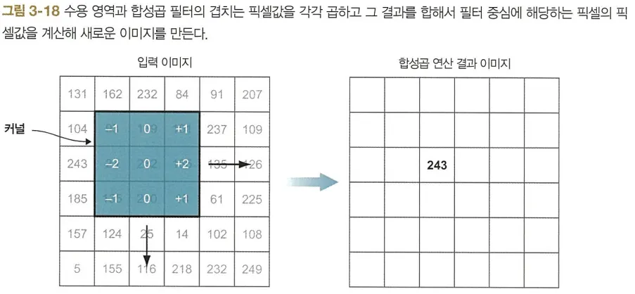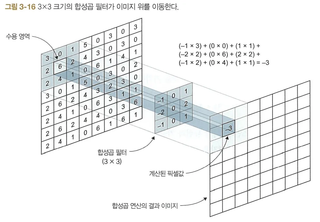 첫 번째 합성곱층을 통해 합성곱층이 이미지를 처리하는 과정은 [그림 3-16]과 같다.