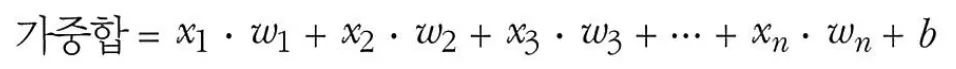 다음은 다층 퍼셉트론에서의 가중합 계산식이다.