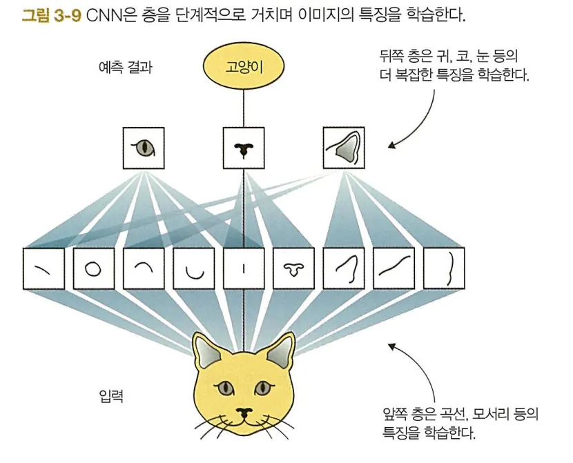 첫 번째 층에서 기본적인 특징(모서리, 직선)을 학습하고,