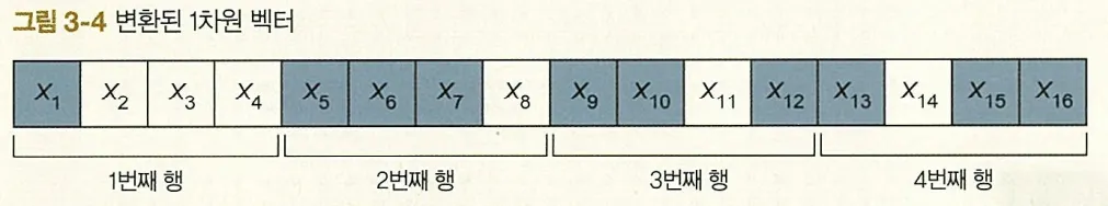 이 과정을 이미지 벡터 변환(image flattening)이라고 한다.