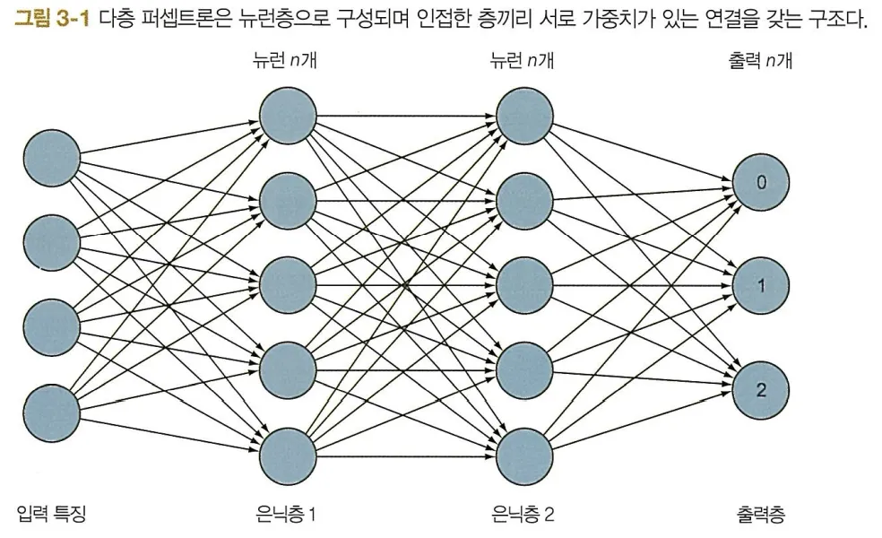 이를 이해하기 위해 (2장에서 설명한) MLP의 다이어그램은 다음과 같다.
