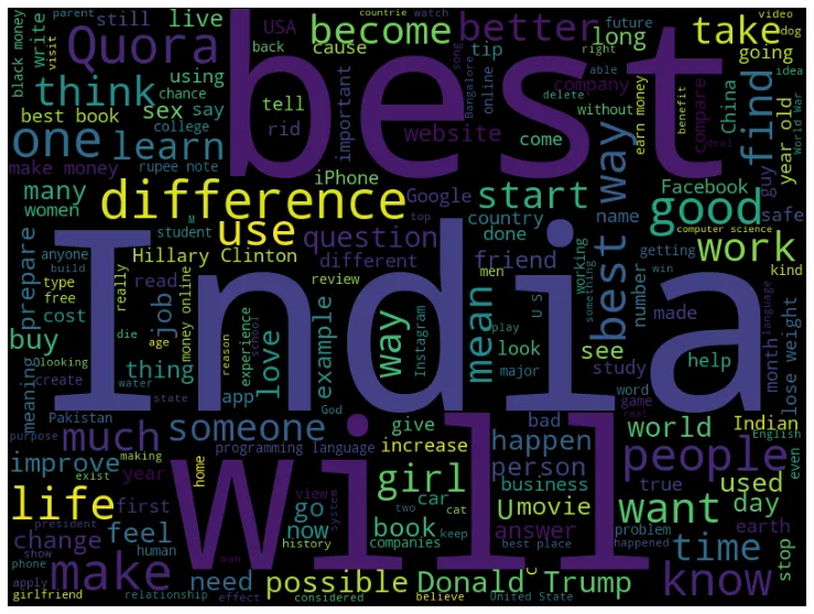 워드클라우드를 살펴보면 best, india, donal Trump, Quora 등의 단어가 많이 사용됨을 알 수 있습니다.